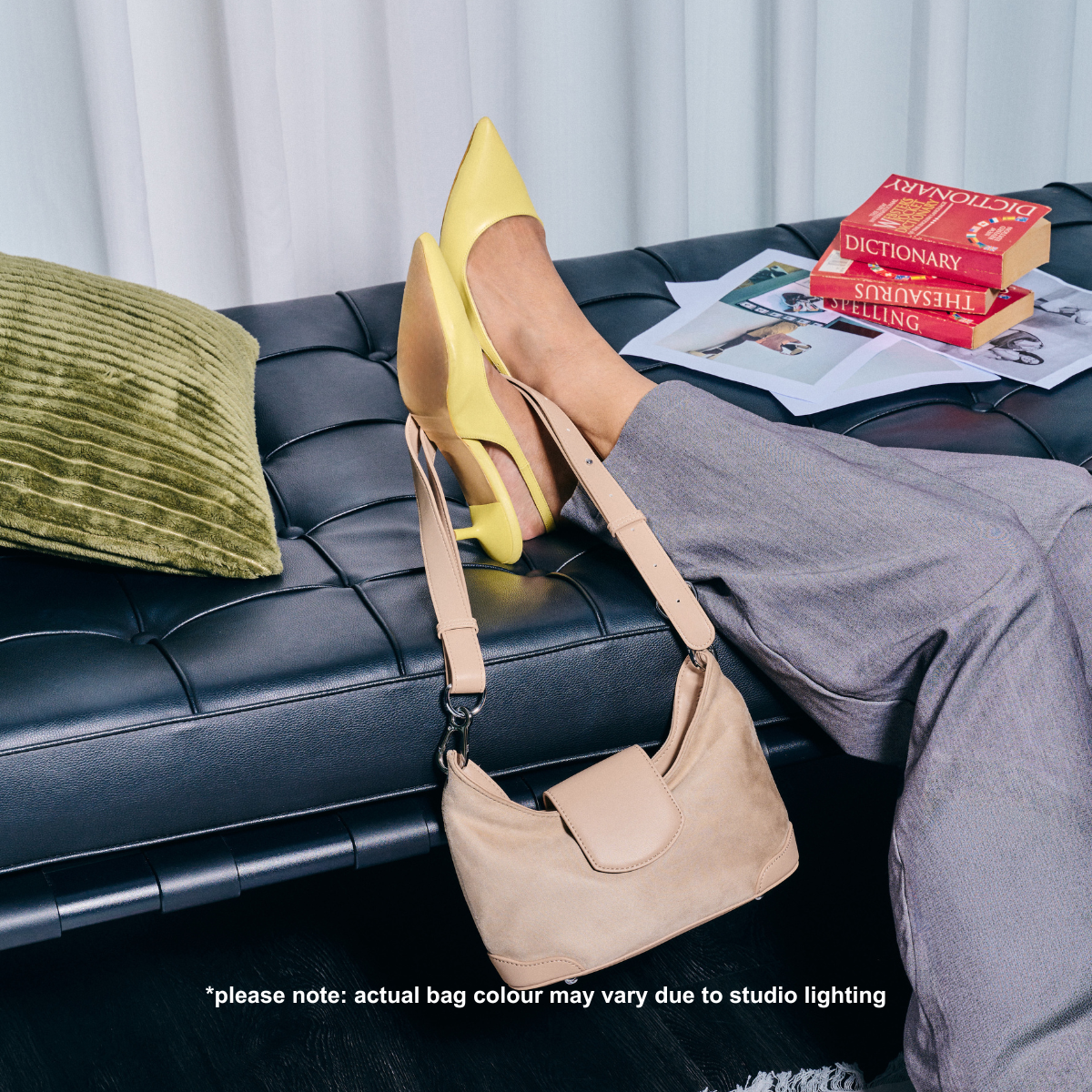Material: velvet suede with vegan leather base