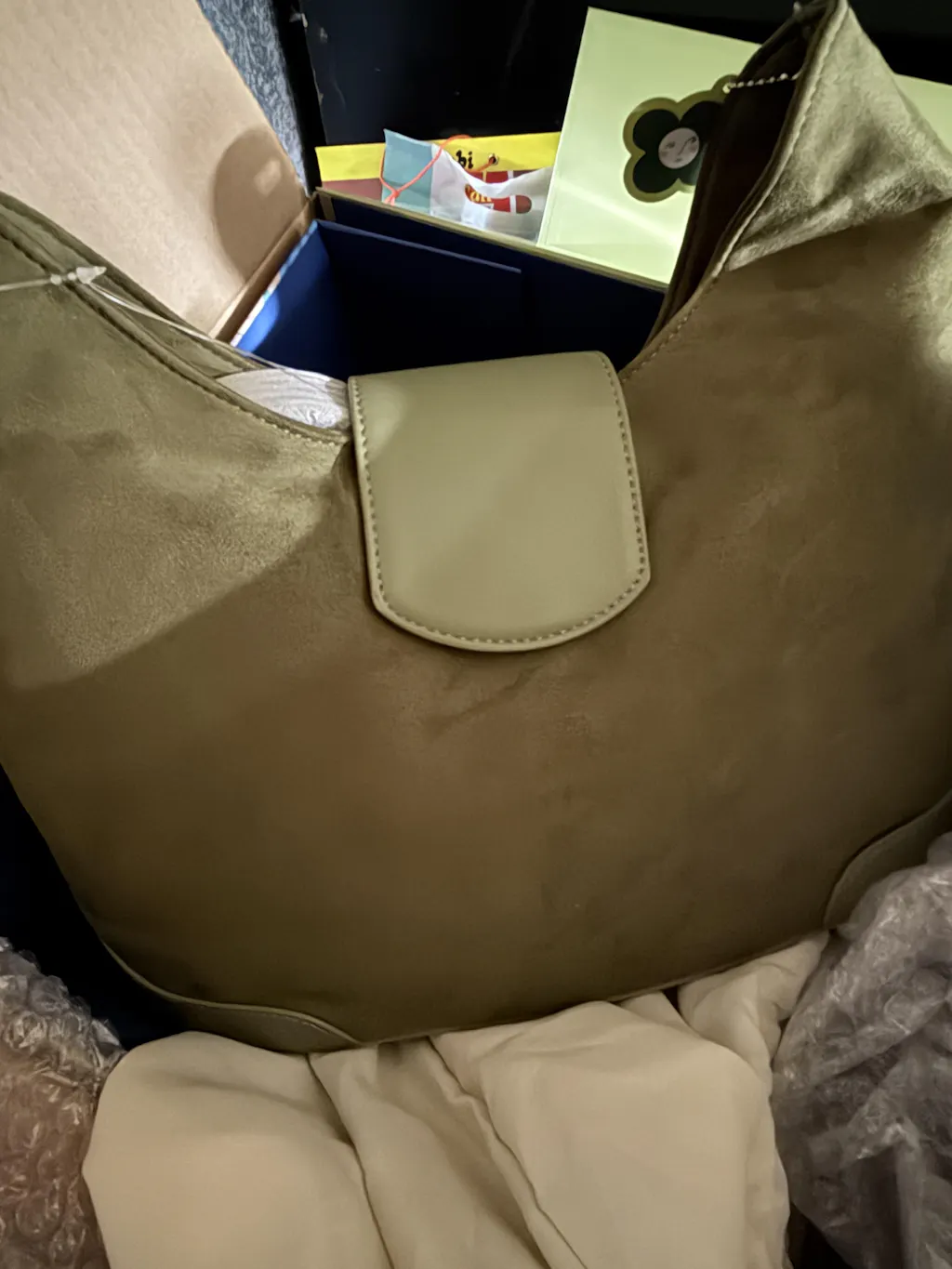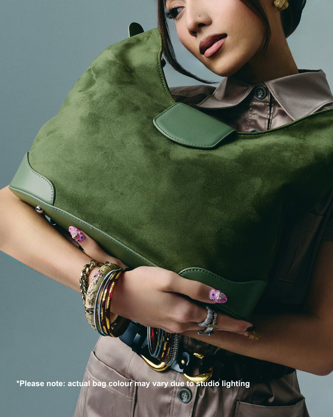 Crafted from the dreamiest velvet suede, Slouchie is all about softness. Like a hug for your shoulder. Fluffy, plush, squishable, and soft to nap on - okay maybe don't, but you'll want to. With a spacious interior, the Slouchie bag proves you really can have everything in your bag. She holds it all.