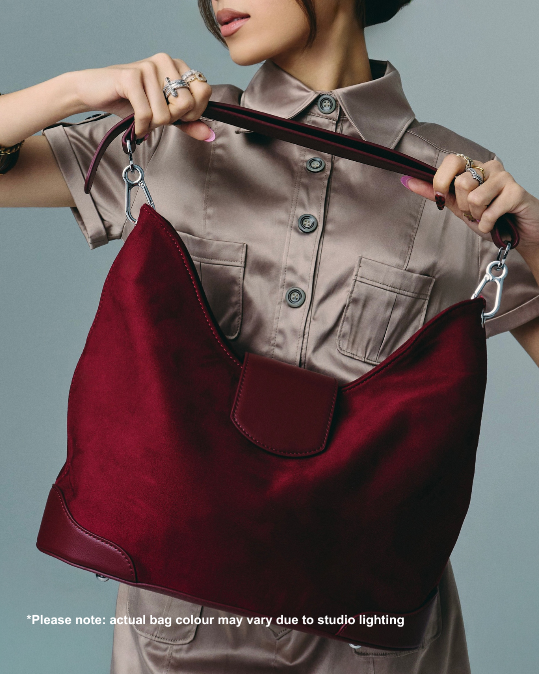 Crafted from the dreamiest velvet suede, Slouchie is all about softness. Like a hug for your shoulder. Fluffy, plush, squishable, and soft to nap on - okay maybe don't, but you'll want to. With a spacious interior, the Slouchie bag proves you really can have everything in your bag. She holds it all.